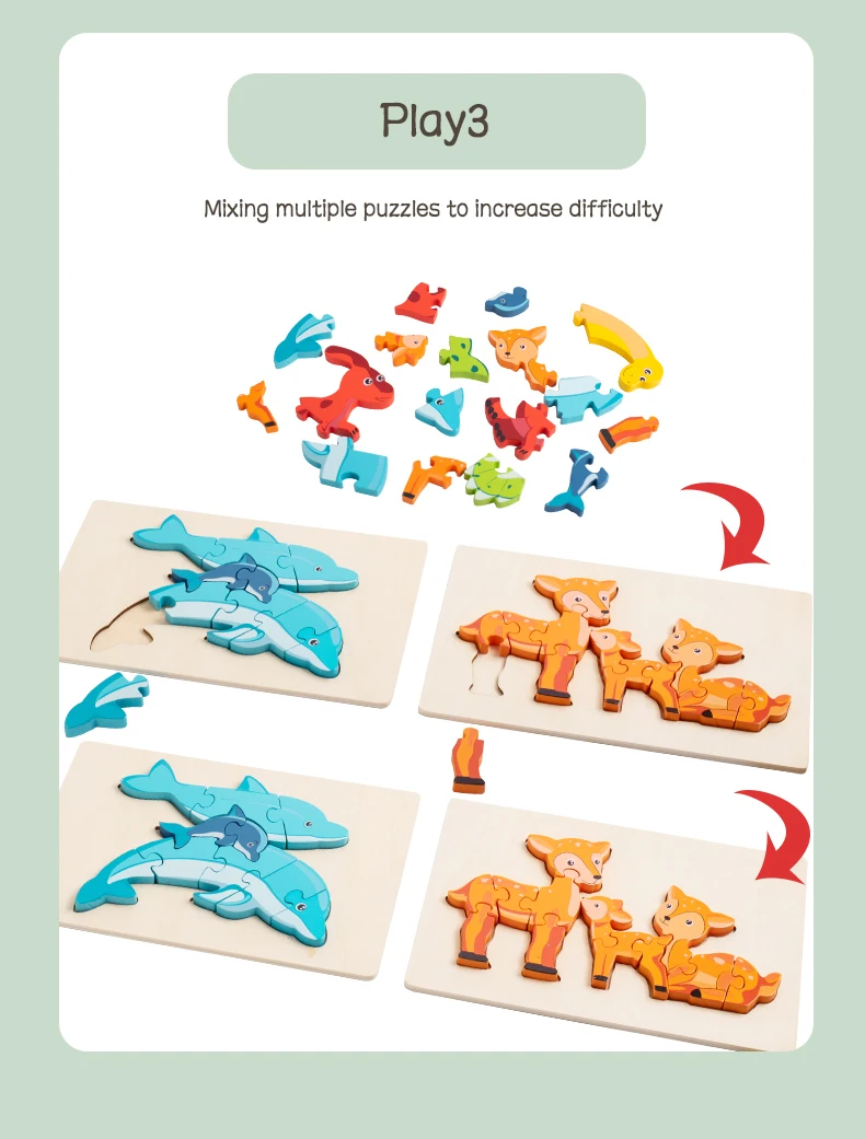 Wooden Educational Animal Jigsaw Puzzle Game Wooden animal parent-child puzzle Animal Puzzle Baby